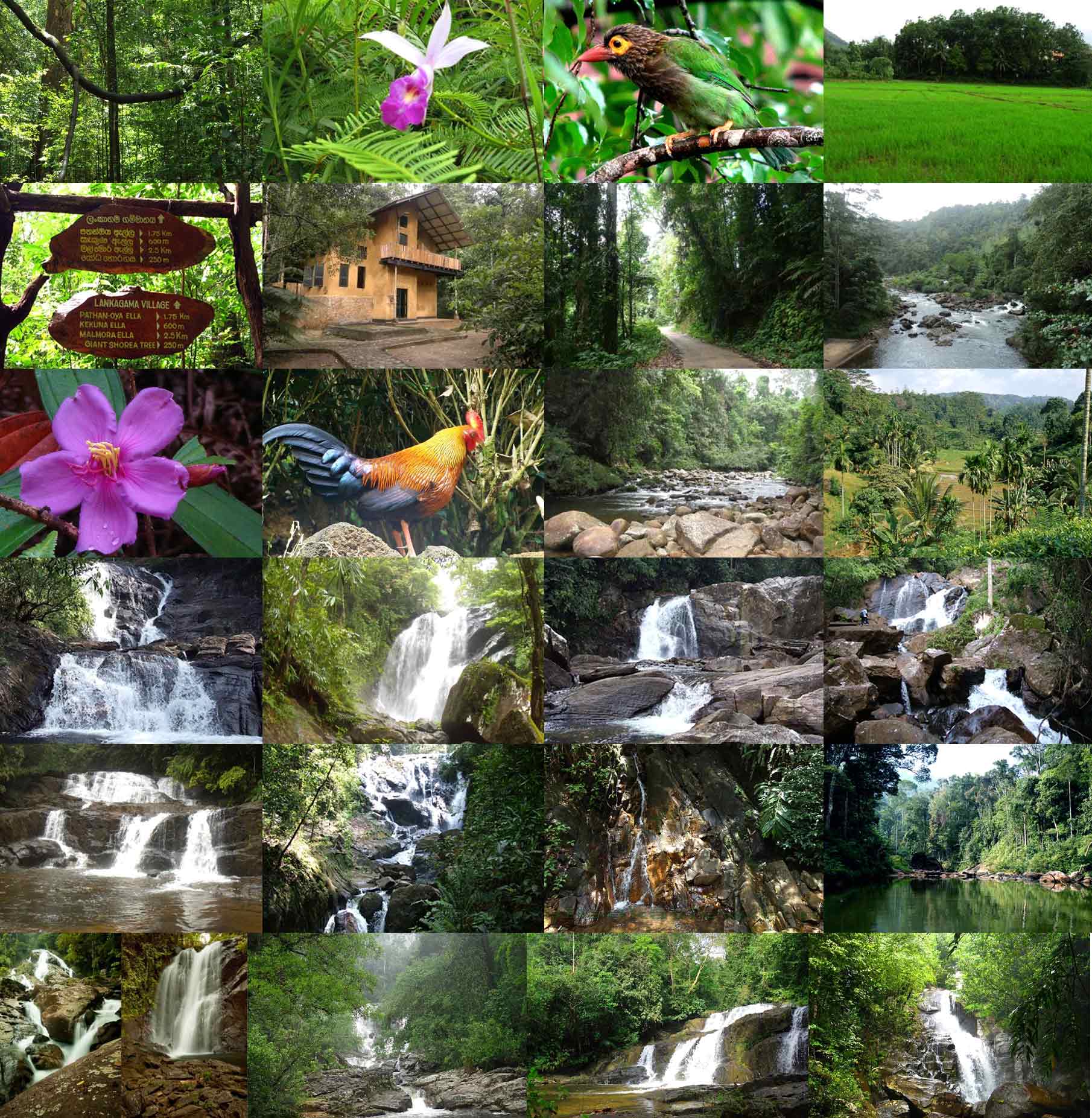 The hilly virgin rainforest, part of the Sri Lanka lowland rain forests ecoregion, was saved from the worst of commercial logging by its inaccessibility, and was designated a World Biosphere Reserve in 1978 and a World Heritage Site in 1988. The reserve’s name translates as Lion Kingdom.